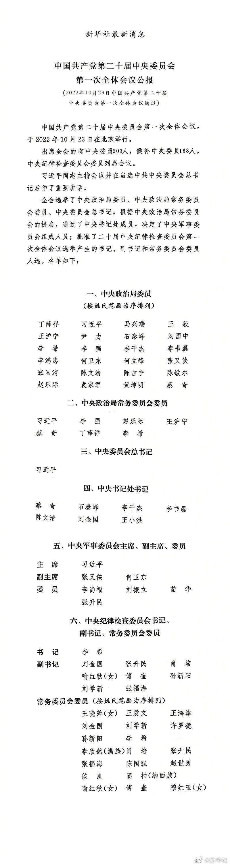 中共二十届一中全会公报